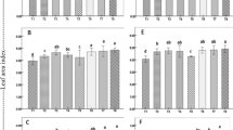 In order to measure the antioxidant enzyme activities (SOD, CAT, APX and POD) and malondialdehyde (MDA) contents, leaf samples (0.5 g) were taken per treatment and homogenized in 8 mL of 50 mM potassium phosphate buffer (pH 7.8) under ice cold conditions. Homogenate was centrifuged at 10,000 g for 20 min at 4 °C and the supernatant was used for the determination of the following enzyme activities. Superoxide dismutase (SOD) activity was assayed by measuring its ability to inhibit the photochemical reduction of nitroblue tetrazo-lium (NBT)47. NBT reaction solution contained 50 mmol L−1 phosphate buffer (pH 7.8), 13 mmol L−1 methionine, 75 μmol L−1 NBT, 2 μmol L−1 riboflavin, 0.1 mmol L−1 EDTA. The reaction mixture was 3.1 mL, which contained 3 mL NBT reaction solution and 0.1 mL of enzyme extract. Reaction was started by adding 2 μmol L−1 riboflavin and placing the reaction tubes under 15 W fluorescent lamps for 15 min. A complete reaction mixture without enzyme extract served as a control. The photo reduction of NBT was measured at 560 nm and one unit of SOD was defined as being present in the volume of extract that caused inhibition of the photo- reduction of NBT by 50%. Guaiacol peroxidase (POD) activity was measured with guaiacol as the substrate in a total volume of 3 mL48. The 3 mL reaction mixture consisted of 2.7 mL phosphate buffer (25 mM, pH 7.0), 0.1 mL guaiacol (1.5%), 0.1 ml H2O2 (0.4%) and 0.1 mL of enzyme extract. Increase in the absorbance due to oxidation of guaiacol (E = 25.5 mM−1 cm−1) was measured at 470 nm. The enzyme activity was calculated in terms of l M of guaiacol oxidized g−1 FW min−1 at 25 ± 2 °C.