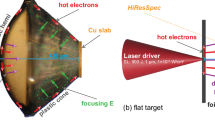 In isochoric heating experiments with laser-driven ions18,19,20,21,22,23,24,25, the temperature of the target increases beyond 10,000 K while still maintaining near-solid density and the originally cold target becomes warm dense matter26. With laser-generated ions, one has the potential for high volumetric heating uniformity compared with direct laser heating, where most of the laser light is first absorbed at the front surface of the target (within 100 nm) and the rest of the target is subsequently heated by the resulting hot and return electron currents. Still, uniform heating across the whole target depth is not reached when using ions with a typical exponential energy spectrum because low energy ions tend to heat the front surface of the target more strongly6,20,21,22,23.