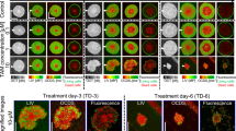 Treatment response was determined by evaluating the changes in fluorescence intensity of TPT uptake, spheroid sizing of DIC (differential interference contrast) images and propidium iodide (PI) staining of dead/damaged cells.