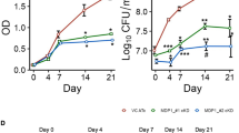 During in vitro growth, M. bovis is unable to use glycerol as a sole carbon source and subsequently unable to use carbohydrates to generate energy due to the lack of a functioning pyruvate kinase47, which blocks the ATP-generating roles of glycolysis and the pentose phosphate pathway. In line with previous results18, our data showed higher levels of transcription of glpD2 across all BCG strains compared with M. bovis linked to the DU2 duplication (Fig. 3A) and strong up-regulation of energy production related genes including NDH-1 and the ATP synthase operons (Fig. S7). These results reflect the ability of BCG strains to use glycerol as a carbon source and carbohydrates to generate energy. By contrast, frdA, aldA, aldB and nuoJ, encoding fumarate, aldehyde and l-alanine dehydrogenase and NADH dehydrogenease I respectively, were suppressed differentially among BCG strains (Fig. S7). Additional confirmation of metabolic remodelling is seen in the divergent regulation of genes associated with fatty acid degradation (Fig. 3A). Hence, genes that collectively are predicted to encode enzymes necessary for the biochemical activation and β-oxidation of fatty acids, including fatty acid-coenzyme A (CoA) synthase, acyl-CoA dehydrogenase, enoyl-CoA hydratase and acetyl-CoA transferase were all divergently regulated among BCG strains. Similarly, a lipid desaturase gene desA3 that is putatively involved in fatty acid modification48, was suppressed across all BCG strains compared with M. bovis (Fig. 3A). A previous study showed that inactivation of the desA3 gene attenuates M. tuberculosis in mice49, suggesting a key role for this lipid desaturase gene in virulence. Taken together, these data support the view that BCG uses glycerol as a carbon source during in vitro growth47 and provides clues to an alternative mechanism by which BCG is attenuated.