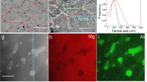 The formation mechanism of the uniform hierarchical structure comprising a top Mg-Al LDH microsheet layer and inner compact layer during the one-step hydrothermal treatment is described here. The AZ80 Mg alloy has many non-matrix phases such as the β-phase (Mg17Al12) and AlxMny dispersed in the Mg alloy acting as cathodes relative to the Mg matrix (α-phase) causing deleterious effects and affecting the corrosion performance13. The primary effect enhances galvanic corrosion of Mg and Al to create supersaturated Mg2+ and Al3+ around the cathodes which further precipitate to form large flower-like structures which may be potential defects to degrade the corrosion resistance due to the diffusion channels in the non-compact zone. The Mg-Al LDH microsheet layer is conventionally fabricated in acidic solutions, but the formed Mg-Al LDH layer has many cracks compromising the surface uniformity and corrosion resistance26,27. Here, the film comprises a compact inner layer and uniform Mg-Al LDH microsheet layer as a result of the fast hydrothermal dissolution and precipitation at the high temperature and moderately high pH. Al on the surface of the AZ80 substrate dissolves due to the high OH− concentration, but the high pH also increases the chemical passivity of Mg thus restricting the growth of Mg-Al LDH (Figure S2). The two effects are mediated in the alkalescent solution resulting in precipitation of the uniform Mg-Al LDH microsheet layer on the surface. Even for a short hydrothermal time or low hydrothermal temperature, the precursor of the microsheets can be observed suggesting that precipitation is spontaneous (Figure S5). As the hydrothermal time is increased, the thickness of layer increases slowly because the formed layer inhibits direct contact between the Mg alloy matrix and solution. The chemically active Al in the inner layer dissolves gradually and diffuses to the surface providing the source for the Mg-Al LDH growth (Fig. 3). Costantino et al.28 have reported that Al ions are co-precipitated with Mg ions to produce a solid substance with a stoichiometry of two Mg2+ for each Al3+ at pH values of 8.5–9.0. However, a stable structure of layered Mg6Al2(OH)18 with an Mg/Al molar ratio of 3 can be formed preferentially in a high pH environment24,29, but dissolution of Al from the surface microsheets is also promoted giving rise to many pit defects (Fig. 4). By further increasing the pH to 13 and 14, the Mg-Al LDH microsheets shrink and diminish gradually. It is because of the enhanced chemical passivity of Mg at the high pH thus restricting the growth of Mg-Al LDH. On the other hand, the Al enriched phases such as β-phase (Mg17Al12) and AlxMny dissolve to form holes on the surface due to the high chemical activity of Al in the alkaline medium (Figure S2). It should be noted that the pure Mg matrix without Al may not support the growth of microstructures on the Mg substrate because of the small solubility in DI water and strong passivity at high pH (Figure S6).