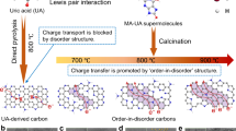 Raman spectroscopy was used to characterize the structure of NP-3DG (see Fig. S1 in SI). The D-band of graphitic materials is related to the density of disorder sites that are due to the breathing mode of k-point phonons of A1g symmetry while the G-band is associated with the conjugated structure of sp2 carbon domains46,47. The intensity ratio of the D band to G band (ID/IG) for NP-3DG is about 1.1, whereas the value for 3DG is 1.05. The slightly higher D/G ratio of NP-3DG may be attributed to additional defects around the nanopores in NP-3DG.