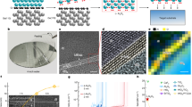 The BTO layer was epitaxially grown on a SRO/DyScO3 single crystal substrate by a PLD and the AO layer was deposited by an ALD, as shown in Fig. 5a. Details for the PLD processes of the BTO and SRO layers are reported elsewhere34 and the ALD of Al2O3 was performed using trimethylaluminum and O3 (with a concentration of 250 gm−3) as the Al-precursor and oxygen source, respectively, at a sample temperature of 250 °C. Pt top electrode with an area of 6000 μm2 was fabricated by a lift-off lithographic process followed by an electron-beam evaporation of 70 nm-thick Pt layer. The P-V measurements were performed using Aixacct TF-2000 ferroelectric tester with an AC frequency of 1 kHz in a virtual ground mode.