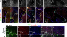 The retroviral vectors cytomegalovirus immediate early enhancer-chicken β-actin hybrid-Cre recombinase: green fluorescent protein (CAG-Cre:GFP) and CAG-red fluorescent protein (RFP) were generous gifts from F. Gage (Salk Institute, La Jolla, CA). (CAG-Cre:GFP) is also available from Addgene (plasmids #49054#). Retroviruses were generated using an all-transient transfection approach. 293T cells were transfected with a mixture containing three separate plasmids, including capsid (CMV-VsVg), viral proteins (CMV-gag/pol) and retroviral vectors using Polyethylenimine (PEI). Virus-containing supernatant was harvested twice, 48 h and 96 h after transfection and concentrated by two rounds of ultracentrifugation. Viral titers ranged between 0.5 and 5 × 107 colony-forming units (cfu) ml−1. For all experiments, 8-week-old males and females FVB/N Rbflox/+ and Rbflox/flox were used. Mice were anesthetized with isoflurane and stereotactically injected with 1.5 μl of a 1:1 mixture of CAG-Cre:GFP and CAG-RFP retroviruses into the left and right SVZ. Coordinates were (in mm): −0.7 anterior/posterior ±1.2 medial/lateral from bregma and −1.9 dorsal/ventral from dura. Animals were transcardially perfused with 4% paraformaldehyde (PFA) at 28 days post injection.