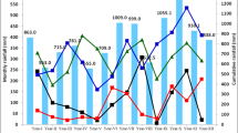 Soil water content was measured gravimetrically (drying method, w/w) to a depth 120 cm at 20 cm increments before sowing and at different growth stages of maize. Three random locations in each plot were taken to measure soil water content. The soil bulk density was determined according to Robertson et al.42.
