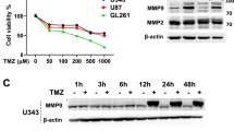 For the MTT assays, the cells, including all transfectants, were grown to the exponential phase and detached by trypsin treatment. A total of 2000 cells/well were plated onto 96-well tissue culture plates (100āμl complete medium/well) and cultured at 37ā°C in 5% CO2. Different TMZ concentration gradients were performed on H4 and U87 cells, and after 3 days, 20āμL per well of MTT reagent was added and incubated at 37ā°C for 1āhour. Subsequently, the absorbance values of each well were measured with a microplate spectrophotometer at 490ānm. Results were plotted as meansā±āSD of three independent experiments.
