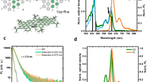 The use of Raman spectra confirms the change of the Fermi energy during doping, as shown in Fig. 5a–c. The G peak at ~ 1590 cm−1 is usually assigned to the E2g phonon of the C sp2 atoms, the D peak at ~ 1347 cm−1 is a breathing mode of κ-point phonons of A1g symmetry, the 2D band at ~ 2700 cm−1 is due to a double resonance process and combinational modes in the D + G band exist at 2938 cm−1 21. The D peak is visible in Fig. 5a, indicating the presence of a significant number of defects in the ERGO nanosheets. The D/G intensity ratio (0.34) in Fig. 5b is much lower than that in Fig. 5a from ERGO (1.16), which indicates that the defect density of graphene is significantly lower than that of ERGO. Doping using charge carriers of either sign causes G-peak stiffening as a result of the non-adiabatic removal of the Kohn anomaly from the Γ point29. When R6G molecules are adsorbed onto the ERGO, the G peak clearly up-shifts and exhibits a frequency shift of ~14 cm−1. The observed Raman bands are assigned to the R6G molecules. The Fermi energy from the doping carrier concentration is obtained from the experiential formula13: