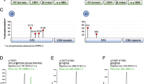 Cellular compartment analysis by WoLF PSORT41 revealed that 67.5% of PKM2 substrates are nuclear proteins (Fig. 2D), consistent with the fact that dimeric PKM2 translocates into the nucleus and phosphorylates proteins in there27,28,29. This result also suggested that PKM2 regulates the functions of large number of nuclear proteins, albeit PKM2 also exerts its regulatory function in multiple compartments, as substrates of PKM2 were found in the cytosol (16.36%), cytosol and nucleus (4.27%), mitochondria (4.51%), plasma membrane (3.80%), endoplasmic reticulum (0.95%) and peroxisome (0.24%) (Fig. 2D).