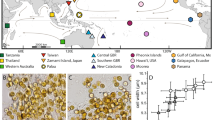 Porites astreoides (Lamarck, 1816) is a common coral species found throughout the Caribbean, occurring over a wide range of depths and habitats7,8 down to 70 m9. It occurs as two color morphs, with the yellow/green morph generally observed in shallower waters than the brown morph, although both are often found side by side10,11. In addition, P. astreoides undergoes internal fertilization, releasing semi-mature planulae monthly from January to September4,12 and has an unusual mixed breeding system, in which half of the colonies are hermaphroditic and the other half are female13. Algal symbionts are present in brooded P. astreoides larvae when released13 and appear to follow strong zonation patterns along depth gradients of 2–25 m in Panama14, the Bahamas14, Belize15 and Curacao16. Finally, P. astreoides appears to be the only scleractinian coral species that is becoming a more prominent component of coral reef communities throughout the Caribbean17. A comparison of historical data collected from 1974–1992 with photoquadrats from 2003–2004 revealed that the relative percentage of cover of P. astreoides has increased from <20% to 50% in shallow habitats spanning over a 4,000 km arc of the Caribbean17.