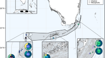 Identical MLGs (clones) were identified in GenAlEx v.6.4160 by requiring complete matches at all loci. The same number of unique MLGs (N = 590) were found whether missing data were considered or not. Tests for conformation to HWE expectations were performed using the program Genepop61. The R-package FDRtool was then used to adjust p-values for multiple testing62. Since large heterozygote deficits are common in marine invertebrates63,64, the program INEST65 was used to distinguish among some of the possible causes for departures for HWE by estimating null allele frequencies while accounting for inbreeding. Population level pairwise FST comparisons were performed in GenAlEx v.6.41. Finally, a Principal Component Analysis (PCA) was performed on a matrix of covariance values calculated from population allele frequencies in the program GenoDive v.2.2066. Then, to assess if there was a relationship between uncorrected FST and geographic distance, a Mantel’s test for isolation-by-distance was run in GenoDive with 999 bootstrap permutations, including only sampling locations with ≥10 individuals.