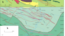 The Darbut fault is about 100 km long, trends in the SW-NE direction and dips toward the NW24. Similarly, the other two major faults, Hatu fault and Anqi fault, in the hanging wall of the Darbut suture, are both compresso-shear faults, SW-NE-orientated and dipping toward the NW (Fig. 1). Both Hatu fault and Anqi fault trend along the lithostratigraphic boundaries, whereas the secondary faults, restricted by the major faults, are mainly NW-SE-orientated and dislocate the SW-NE-orientated stratigraphic units obviously (Fig. 1(b)). Moreover, a large amount of known mineral deposits, occurrences and spots in the region are controlled by the two faults (Fig. 1(b)). The perpendicular distance between Hatu fault and Anqi fault is about 5 km, while the perpendicular distance between Anqi fault and Darbut fault is about 17 km (Fig. 1). Based on the stress field of the thrust fault formation, thrust faults formed simultaneously, parallel and with nearly equal intervals25. Thus, there should be one or two SW-NE-orientated major compresso-shear faults between the Anqi fault and Darbut fault (Fig. 1(b)).