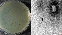 A temperature-controlled incubator or water bath was used to determine the stabilities at different pH, disinfectants, ions or temperatures. After the desired treatment, the tube was cooled down slowly, placed in an ice water bath and samples were assayed to determine surviving pfu. Briefly, for thermal stability tests, aliquots of phage suspensions were incubated at 37 °C (pH 1–14) for 60 min, and then the phage titres were tested by the double-layer agar method. For pH stability tests, aliquots of phage suspensions were incubated at 4, 25, 37, 50, 60, 70 and 80 °C for 75 min; the phage titres were determined every 15 min. For disinfectant sensitivity, aliquots of phage suspensions were incubated with different concentrations of ethanol or isopropanol for 90 min; the phage titres were determined every 30 min. For divalent ion sensitivity, aliquots of phage suspensions were assayed on solidified base nutrient agar (1.5% agar) with different concentrations of Mg2+ or Ca2+ and the phage titres were tested.