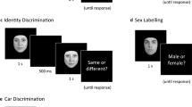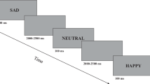The stimuli used for the representation of duration were a grey oval and three types of facial pictures, namely, happy, fearful and neutral faces. Facial pictures were black and white photographs selected from the Chinese Facial Affective Picture System31, with equal number of facial pictures between males and females. A total of 72 faces were used (24 happy, 24 fearful and 24 neutral ones). All stimuli were presented with the same contrast and brightness on the black background (4.0° × 4.6° visual angle).