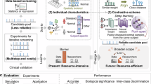 To set up a baseline for the quality of adjacency discovery, 12 variants of univariate association methods were applied to the observational dataset. Variables that are considered to have statistically significant association with the target variable are considered as members of the local causal pathway and are output. The 12 variants (3 × 2 × 2) consists of the combination of 3 association tests (Pearson correlation, Spearman correlation, or mutual information), two alpha levels (0.05 or 0.01), and two methods for correcting for multiple statistical tests (no correction or multiple comparisons correction36); see Fig. 1.