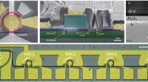 A bus waveguide-coupled microring resonator (MRR) was employed with the PMC to evaluate its memory functionality (See Methods for device fabrication details). The PMC is symmetrically radial in the MRR as seen in Fig. 1b. Figure 1c,e show the SEM and TEM cross section of the MRR. The MRR’s floating gate effective index is altered by biasing the appropriate device terminals which affects the optical spectrum carried by the bus waveguide.