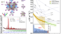 AgCrSe2 was revisited recently for its thermoelectric properties above room temperature7,8: above TOD, its thermal conductivity is extremely low (~0.2–0.5 W.K−1.m−1) and nearly temperature independent, a fact related to the amorphous lattice of silver atoms. Figure 2 illustrates the temperature evolution of the thermoelectric power S and thermal conductivity κ below TOD, in the 5 to 300 K range. S exhibits a large positive value of 300 μV.K−1 at RT, characterizing holes as the majority carriers. It slowly decreases between 300 K and 75 K, with a change of slope being observed below 75 K, without any noticeable change at TN. The thermal conductivity of AgCrSe2 at RT is extremely low, ~0.4(1) W.K−1.m−1, a value comparable to that of glasses. Its sluggish increase as T decreases in the range 300–100 K does not follow the T−1 behaviour expected for phonon heat transport9. A small thermal hysteresis is visible in κ but not in S, suggesting a slight structural irreversibility that has little impact on the electronic states.