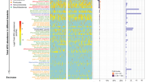 Furthermore, the total abundance also significantly decreased after the dietary intervention from 4075.51 ± 313.91 to 3410.52 ± 306.90 (Fig. 1b). Among the 399 ARGs, the abundance of 86 ARGs significantly decreased and accounted for 33.39% ± 3.39% and 24.48% ± 2.79% of the total resistome abundance in each individual before and after the intervention. A total of 222 ARGs decreased and accounted for 47.90% ± 4.48% (before) and 41.22% ± 5.68% (after) of the resistome. Although 10 ARGs increased significantly, their abundance only increased from 1.96% ± 0.94% (before) to 8.94% ± 3.33% (after). The ARGs that significantly decreased mainly belonged to the tet, mdt, and erm families, and the majority of the increased ARGs were members of the pbp and erm families (Fig. 2 and Supplementary Table 1).