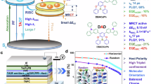 Carrier drift under uniform external electric field is the dominate mechanism of free carrier injection and transportation in organic light-emitting diodes (OLEDs)1,2,3. Electrons and holes are injected as polarons from highly conductive, metallic, cathodes and anodes. They are then transported through the highest occupied molecular orbital (HOMO) and lowest unoccupied molecular orbital (LUMO) levels of organic semiconductors to a light emission layer respectively, resulting in the formation of excitons and radiative recombination transitions4,5. Thus, it is crucial to reduce barrier heights for the carrier injection at the metal/organic and organic/organic interfaces6,7,8,9,10. For the same reason, heat dissipation at injection barriers interfaces is not trivial for energy loss in OLEDs11. Hot carriers exceed the energy gap of the emitting material, so the excess energy is wasted thermally, giving rise to a lower power efficiency. The reduction of the carrier injection barriers by decreasing the difference between adjacent energy levels is now a common method to optimize the efficiency of OLEDs7,12,13,14,15.