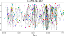 All experimental procedures were approved by the Animal Care and User Committee (ACUC) of the National Institute of Mental Health, USA and were carried out in accordance with the approved guidelines. Coronal slices from rat dorsolateral cortex (postnatal day 0–2; 350 μm thick) were attached to a poly-D-lysine coated 60-microelectrode array (MEA; Multichannelsystems, Germany) and grown at 35.5 in normal atmosphere in standard culture medium without antibiotics for 4–6 weeks before recording. Cortex slice cultures retain the cortical architecture of layers and corresponding cell types, as well as the mesoscopic and microcircuit organization in intrinsic cortical connectivity. Three sets of data have been used for the study, recorded in non-driven, driven and disinhibited conditions. The first one has been taken from Beggs et al.8 and consists of avalanche activity measured from cortex-striatum-substantia nigra triple cultures or single cortex cultures. In short, spontaneous avalanche activity is recorded outside the incubator in standard artificial cerebrospinal fluid (ACSF; laminar flow of 1 ml/min) under stationary conditions for up to 10 hrs. The second set has been taken from Stewart et al.46. Spontaneous avalanche activity is recorded inside an incubator in 600 μl of culture medium under sterile conditions for at least 5 hrs. The head stage with the MEA is rocked between ±75° with a sinusoidal trajectory and a pause of 10 s at the steepest angles before reversing direction (cycle time 200 s). The exposure to atmosphere at the steepest trajectory angles triggers transient neuronal activity increases. For the third data set, which has been described in Shew et al.47, bath application of the GABAA-receptor antagonist picrotoxin (PTX; ~3 μmol) is used. In all the three conditions we only consider spontaneous, non-stimulated activity. The spontaneous local field potential (LFP) is sampled continuously at 1 kHz at each electrode and low-pass filtered at 50 Hz. Negative deflections in the LFP (nLFP) are detected by crossing a noise threshold of −3 SD followed by negative peak detection within 20 ms. nLFP times and nLFP amplitudes are extracted. Neuronal avalanches are defined as spatio-temporal clusters of nLFPs on the MEA8. A neuronal avalanche consists of a consecutive series of time bins of width that contain at least one nLFP on any of the electrodes. Each avalanche is preceded and ended by at least one time bin with no activity. Without loss of generality, the present analysis is done with width