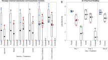 Concentrations of short-chain fatty acids (SCFAs) in feces were determined via gas chromatography (GC-8 A, Shimadzu Corp., Kyoto, Japan). Briefly, 1 g of feces was mixed with 5 mL ddH2O and then centrifuged for 15 min at 10,000× g and 4 °C. Then, 1 mL of supernatant was mixed with 20 μL orthophosphoric acid (85%) for 1 h at 4 °C and centrifuged for 15 min at 12,000× g and 4 °C. The supernatant was transferred into a gas chromatography vial and 2 μL of supernatant was injected into a 2-m × 3-mm glass column packed with Porapak Q (80 mesh; Agilent Technologies Inc., Santa Clara, CA, USA) as previously described26. SCFA concentrations were normalized to feces weight as μmol/g.