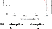 (a) When the growth temperature is high enough, AlN grows along [0001] direction and (0001) is the facet on surface. (b) Other facet on surface instead of (0001) occurs while the growth temperature decreases. (c) () plane becomes facet on surface when the growth temperature is lower than 1390 °C. (d) (