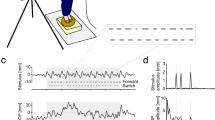 Participants (14, mean age 25.1 years, SD = 3.7 years, 5 females) were asked to detect faint tactile stimuli delivered to the distal phalanxes of their left and right index fingers by solenoid tappers in different experimental conditions12. Stimulation intensity was manually adjusted in the following way. A staircase procedure was used to identify the lowest intensity at which a tactile stimulus could be reliably detected on each finger. Stimuli of increasing intensity were applied until participants reported a sensation. Stimulus intensity was successively decreased and then increased again until exactly 5 of 10 stimuli were detected. Next, the intensity obtained was tested in an automated detection block (24 trials: 4 signal-absent, 10 left finger stimuli, 10 right finger stimuli in randomised order) to check that 40–60% of stimuli were reliably detected. This level was taken as a working estimate for near-threshold tactile stimulation and used during the experiment.