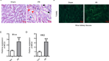 Left kidneys were dissected from mice 1 day and 28 day after I/R and fixed in 10% formalin. Formalin-fixed kidneys were embedded in paraffin, and 4 μm sections were stained with Hematoxylin and Eosin (H&E). Tubular necrosis was semi-quantitatively analyzed according to previously reported methodology47. Renal MPO, fibronectin, collagen IV and α-SMA was evaluated by immunohistochemistry as the method previously described40. Masson’s trichrome staining was used to evaluate renal fibrosis. Twenty-four hours after I/R, cell apoptosis in paraffin sections was analyzed by TUNEL assay with the in Situ Cell Death Detection kit, POD (Roche, Basel, Switzerland) according to the manufacturer’s instructions. Histopathology and immunohistochemistry scoring was performed by pathologists blinded to the treatment groups. Frozen (day 1) and formalin-fixed (day 28) kidneys were used to perform immunofluorescence analysis with a MyD88 antibody (Abcam) at 4 °C overnight. A Cy3-conjugated secondary antibody was then added at 37 °C for 50 min. Cell nuclei were stained with DAPI.