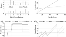 Previous research suggests that cooperation in one-shot anonymous interactions is spontaneous and subjects become greed only after deliberation22,23,24,25,26,27 (and see ref. 28 for a meta-analysis). To explain these results, Rand and colleagues23 have introduced the Social Heuristics Hypothesis (SHH), which maintains that people internalize strategies that are successful in their everyday life and bring them as default strategies in new and atypical situations. Then, after deliberation, they may override these heuristics and shift their behavior towards the one that is optimal in the given situation.
