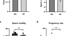 Male BALB/C mice were purchased from the Experimental Animal Center of Sichuan University (Chengdu, China). The high fat diet was purchased from Dashuo Biotechnology Company (Chengdu, China). Each experimental group consisted of six mice. To obtain tissues, mice were sacrificed for blood collection and testicular tissue dissection. All experimental protocols were approved by the Committee on the Use of Live Animals in Teaching and Research of Sichuan University. The procedures were conducted in accordance with approved guidelines.