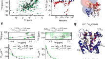 To test the effects of point mutations on kinase Mg2+ binding, the 100-μl reaction mixture contained 50 mM HEPES pH 7.5, 1U of lactate dehydrogenase, 1U of pyruvate kinase, 1 mM phosphoenolpyruvate, 0.2 mM NADH and 2 mM ATP, varying concentrations of Mg2+ (0–2 mM or 0–10 mM) and the kinase (0.05–5 μM). Protein concentrations used in the assay were consistent for both the single and double mutant derivatives of each kinase with Tyr-to-Phe/Thr-to-Ala mutation; for EphA2 variants, the protein concentration used was 0.2 μM, while the PKA variants were used at 0.03 μM and the p38MAPK variants at 3 μM. The reactions were initiated by the addition of 1 mM of the relevant peptide substrate. All experiments were performed in triplicate at room temperature. Reaction velocities were determined by dividing the increase in ADP concentration in the mixture (μM) by the reaction time (min). The Hill coefficient was calculated using the sigmoidal Hill equation as follows: