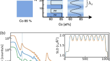 The CFA thin films of constant thickness were deposited on Si(100) at various temperatures using a ion-beam sputtering deposition system (NORDIKO-3450). Prior to the deposition, the Si(100) wafers were ultrasonically cleaned in acetone and propanol baths and subsequently treated with HF (10:1 ratio) solution for 60s to remove the native SiO2 layer. Immediately after the treatment, substrates were loaded into the high vacuum (HV) chamber for deposition using a load-lock system. The substrates were then heat treated at 620 °C for 2 h for smoothening to achieve atomically flat substrate surfaces prior to film growth16. The HV chamber was evacuated down to ~7 × 10−7 Torr using a turbo pump. The 6″ dia. CFA alloy target (composition Co50Fe25Al25) fixed on a remote controlled water cooled turret was sputtered by ~4.5 inch dia. high energy Ar-ion beam (500 eV) extracted from a RF ion-source (grid current/voltage parameters: V+ = 500V, I+ = 79 mA, V− = −270V and I− = 5 mA). During the deposition, the chamber was maintained at ~2.4 × 10−4 Torr by bleeding 3.5 sccm Ar gas directly in to the ion-source operated at 75 W. A series of Si/CFA(53 nm)/Ta(2 nm) thin films were prepared by varying Ts(300 K, 573 K, 673 K and 773 K) while keeping the other parameters constant (i.e., energy of Ar ions, Ar-flow rate and RF-power). A 2 nm thick layer of Ta was used as a capping layer to prevent the surface oxidation. It is to be noted that the above mentioned thicknesses are only the nominal thicknesses derived from measurements on thicker films using surface profilometry employing a Bruker Dektak XT profiler system (Billerica, MA, USA). The actual film thicknesses of the FM layer, Ta and its oxide (Ta2O5) were accurately determined by simulating the experimentally observed X-ray reflectivity (XRR) spectra (Table 1).