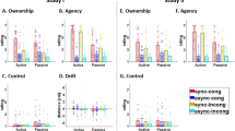Kalckert, A. & Ehrsson, H. H. The moving rubber hand illusion revisited: Comparing movements and visuotactile stimulation to induce illusory ownership. Conscious. Cogn. 26, 117–132 (2014).