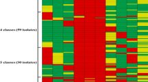 Bayesian Analysis of Population Structure (BAPS) software can be used to determine population structure of bacteria using nested clustering72 and in particular, hierBAPS 6.0 was used27. Clustering was performed with 3 levels in the hierarchy and a prior upper boundary of 50 clusters on the core genome alignment of 850 genes. The estimated number of clusters were 7, 23 and 36 for the levels 1, 2 and 3 respectively. The shuffled SNPs alignment output of hierBAPS is presented in Supplementary Fig. 2. BAPS includes every sequence position which contains at least two alleles. If there is only a single allele and an indel, the site is excluded from the analysis.