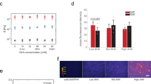 Drug encapsulation efficiency was calculated by comparing the actual amounts of D-glucose (Sigma-Aldrich), IGF-1 (R&D System) and bovine serum albumin (BSA, Sigma-Aldrich) encapsulated in the microparticles over the theoretical amount of each molecule during the particle preparation, as described previously16. PLGA microparticles were dissolved in acetone and the precipitate was collected by centrifugation. The collected precipitate was dissolved in 1 ml of 1 M sodium hydroxide (NaOH) and the solution was neutralized with hydrochloric acid and NaOH by use of a pH meter (Corning). After diluting the solution to the measurable range of each measurement tool, the total amount of each molecule type was determined by a glucose meter (Germaine Laboratories), an IGF-1 ELISA kit (Enzo Life Sciences) and Albumin Blue Fluorescent Assay Kit (Active Motif) (n = 3) respectively. For the drug-releasing profiles, the drug-releasing microparticles were incubated in PBS and the supernatants were collected at designated time points and stored at −20 °C until analysis.