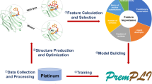 Complementary information also integrated in the signatures includes predicted changes in protein stability to account for changes in flexibility of the binding site (correlation of ρ = 0.188 with experimental data), the type of the ligand in the complex (its molecular properties, e.g., molecular weight, logP, surface area and others) (correlation of ρ = 0.255 with experimental data), the significance of the local/direct effect of the mutation (denoted by the distance from mutated residue to ligand), residue depth33 and affinity of the wild-type complex. These information together with the graph-based features are then used as evidence for machine learning methods. The complete list of features used is available in the Methods.