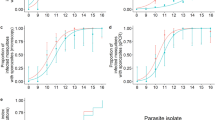 We performed experimental infections of laboratory strains of Anopheles gambiae s.s. with wild isolates of Plasmodium falciparum using the standard membrane feeding assay protocol38 implemented by Sangaré et al.39 to obtain the corresponding non-infectious control blood. Five replicates each with a distinct blood donor were performed for each experiment (survival and fecundity, respectively). The proportion of infected mosquitoes among those that took an infectious blood meal (all experiments included) varied from 51.4% to 97.6% for Kisumu, from 58.1% to 96.9% for Acerkis, and from 61% to 100% for Kdrkis strain. Consistent with previous data22, the susceptible strain Kisumu showed the lowest susceptibility to infection (averaged across replicates, 66.4% ± 2.3) and the resistant strains were more susceptible to Plasmodium infection (Acerkis: 79.7% ± 2.0, p < 0.001 and Kdrkis: 80.2% ± 2.0, p < 0.001).