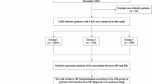 We systematically identified any risk factors for HHF as potential confounding factors, as defined by the following diagnoses recorded between January 1, 2000, and the index date: hypertension (ICD-9-CM 401–405), hyperlipidemia (ICD-9 CM 272), severe hypoglycemia, defined as two or more episodes of hypoglycemia (ICD-9-CM 251.0–251.2,775.6) requiring admission, and the Taiwan comorbidity index. Because Chinese patients with ESRD have different comorbidity patterns than Caucasian patients, we used the Taiwan comorbidity index, which demonstrates a better reclassification for mortality prediction in Taiwanese dialysis patients compared with that seen in the US renal data system index23. The Taiwan comorbidity index includes 10 comorbid conditions: diabetes (ICD-9-CM 250.xx, 357.2, 362.0x, and 366.41), atherosclerotic heart disease (ASHD, ICD-9-CM 410–414, V45.81, and V45.82), congestive heart failure (CHF, ICD-9-CM 398.91, 425, 428, 402.x1, 404.x1, and 404.x3), cerebrovascular accident or transient ischemic attack (CVA/TIA, ICD-9-CM 430–438), peripheral vascular disease (PVD, ICD-9-CM 440–444, 447, 451–453, and 557), chronic obstructive pulmonary disease (COPD, ICD-9-CM 491–494; 496; 510), gastrointestinal bleeding (GI bleeding, ICD-9-CM 456.0–456.2; 530.7; 531–534; 569.84–569.85; 578), liver disease (ICD-9-CM 570–571; 572.1, 572.4; 573.1–573.3; V42.7), dysrhythmia (ICD-9-CM: 426–427; V45.0; V53.3), and cancer (ICD-9-CM 140–172; 174–208; 230–231; 233–234). We calculated the mean comorbidity index score of both cohorts using the following comorbidity-related weight assignments: a weight of 1 assigned to ASHD; 2 to PVD and GI bleeding; 3 to diabetes, CHF, COPD and dysrhythmia; 4 to CVA/TIA and liver disease; and 6 to cancer. The diagnosis in the NHIRD has been previously validated24,25,26. We also identified several medication treatments as potential confounding factors, as defined by the following drugs recorded during the following period: angiotensin-converting-enzyme inhibitor (ACEI), angiotensin receptor blockers (ARB), calcium channel blockers (CCB), α-blockers, β-blockers, diuretics, statins, aspirin, sulfonylureas, glinides, and insulin.
