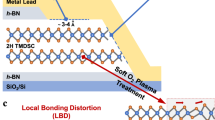 First principles calculations for projected local density of state were performed using the Atomistix Toolkit DFT code (Ver.2015.1) based on the nonequilibrium Green’s function method combined with density functional theory33. PBE-GGA was adopted as the exchange correlation functional and the basis set was double-zeta-polarized. A norm conserving pseudopotential was used for all atoms. The real-space grid cutoff was 75 Hartree. The geometry and the cell size were optimized until all forces were below 0.001 eV/Å and all stresses were less than 0.0001 eV/Å3. A vacuum gap of 15 Å was used in the direction normal to the material plane and there was no interaction between two materials separated by a vacuum. A schematic illustration of the simulation model is presented in Supplementary Fig. S10. The central region of the model included a heterojunction composed of a WS2 bilayer and vertically-stacked MoS2/WS2, with a central region consisting of a plane with dimensions 3.206 × 68.579 Å. An 8 × 100 k-point mesh was employed and the central region was connected to two semi-infinite electrical leads on both sides.