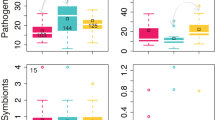 The proportions of unique OTUs and those shared by the soil and root compartments were visualized as Venn diagrams using the R package VennDiagram67. Fungal OTU diversity was assessed by calculating Shannon-Wiener diversity indices68 using the diversity function in vegan60. Differences in fungal diversity and OTU richness were compared using Student’s t-Test assuming unequal variance (F-Test, p < 0.05) and incorporating Jarque-Bera test for normality under usage of the R package fBasics69. Relationships of fungal communities of soil and roots were visualized using NMDS on the basis of a Bray-Curtis distance matrix and 30 random starts using the metaMDS and ordihull functions of the vegan package60.