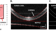 All subjects were imaged using a custom-built UHR-OCT system, which was described previously25,44,45,46 and similar to the one used by Abou Shousha et al.14. Briefly, a superluminescent diode light source with a broad bandwidth of 100 nm centered at a wavelength of 840 nm was used to achieve approximately ~3 μm of axial resolution in corneal tissue. Image acquisition speed was 24 k A-lines per second. Each B-scan consisted of 1,365 × 2,048 pixels, corresponding to a scan depth of 2.02 mm and a scan width of 8.66 mm in the air.