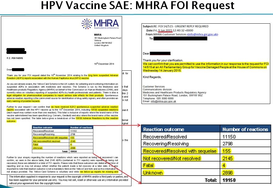 many thanks for this article. Our daughter was very seriously disabled by the HPV vaccine over 5 years ago. She had an immediate reaction to the vaccine, as did many other girls. She was diagnosed with severe ME and hyper somnolence but has also suffered horrendous headaches and body pains. The NHS do everything they can to blame the family and will not recognise vaccine adverse reactions. On the UK government website the JCVI minutes for the HPV sub-committee states that the MHRA have reported that there are no serious adverse reactions with this vaccine. However, the MHRA acknowledge in a FOIA request that 2,881 SERIOUS adverse reactions have been reported, including 8 with fatal outcome. They also acknowledge that only 1-2% of adverse reactions are reported.