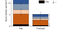 Pre-pubertal (~PND 26–32) or pubertal (~PND 35–44) female C57BL6 mice (wild-type (WT) or α4−/−) were used. α4−/− mice were bred from α4+/− (generously supplied by G. Homanics, U. Pittsburgh). Initially, +/+ mice were used, but supplemented with wild-type mice from Jackson labs because they produced similar outcomes to the +/+ mice bred in house. Female mice were used because α4βδ GABAR expression and physiological effects have been well characterized across pubertal development4,10. Animals were housed in a reverse light:dark cycle vivarium and tested 1 h before the onset of the dark cycle. Puberty onset was verified by vaginal opening4. The estrous cycle does not alter GABAergic inhibition during the pubertal period, as we have previously shown4. All procedures were approved by and carried out in accordance with the Institutional Animal Care and Use Committee at SUNY Downstate.