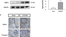 Human kidney samples were obtained from patients with chronic renal TIF and from normal kidney tissue specimens obtained via nephrectomy at the Bucheon St. Mary’s Hospital Department of Pathology. The study was approved by the Medical Ethics Committee of Bucheon St. Mary’s Hospital (HC14SISI0048). All human data and samples used in this study were anonymized. All identifiers of human data or samples were irreversibly stripped via an arbitrary alphanumeric code, making it impossible for anyone to link the samples to their sources. Therefore, no informed consent was obtained from the research participants. All experimental procedures were performed according to animal care and ethics legislation, and the study was approved by the Animal Care Committee of Bucheon Saint Mary’s Hospital.