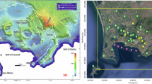 The general results of our analysis are summarized in Fig. 2, which shows the historical elevation changes, from 35 BC to Present, at the sites along the coastline of Pozzuoli Bay. These data show that in 35 BC the coastline extended outward into what is now the Pozzuoli Bay. However, since then all the area started to be affected by a quick subsidence4, which resulted in progressive submersion of the coastline until 1251. The amount of subsidence in the investigated area varies from place to place (Fig. 2) and is well documented by the presence of geomorphological, sedimentological and paleontological indicators. A subsequent progressive emersion of the area started during the 13th century, as suggested by historical and urban planning sources, archaeological evidence and geological data (Supplementary Tables S1 and S2). The lower time limit for the caldera uplift is given by historical documents describing the Pozzuoli promontory as an island in 125115,16, whereas at the end of the 13th and beginning of the 14th century the previously submerged area around the promontory is reported as the location of three new churches. Moreover, coeval urban studies testify to the expansion of Pozzuoli on new land formed by the coastline regression, confirming the onset of a long-term uplift15,16. Since sea-level variation in the last 2000 years has been on the order of 0.7 m on average17 [reference therein], the much larger (see below for values) emersion of the area from the 13th to the 16th century was mainly due to the ground uplift, with the maximum values recorded in the Pozzuoli area.