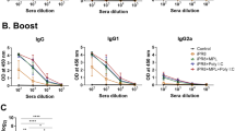 At day 29 post-immunization, the highest titers of OVA-specific antibodies and isotypes, particularly the Th1-type, were observed in the mouse serum from the L-pampo group (Fig. 3f,g). This could be related to the high number of OT-II cells in the L-pampo group. That is, OVA-specific CD4+ T cells from the L-pampo group were significantly maintained and thus likely supported antibody responses well.