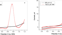 In Fig. 3, a pair of weak redox peaks can be observed on the Au electrode, whereas on the TRGO/Au electrode, a pair of significantly-high peak currents was found during CV analysis. These results indicate that reaction reversibility is possible in the developed microelectrode and the active surface area is enlarged. Clearly, the improved performance could be attributed to the unique nano-structure29. The CV peaks on the anodic curve are different for Au and TRGO/Au, while they are almost the same on the cathodic curve. This result may be due to the efficient electrocatalytic activity of TRGO, which facilitated the fast electron transfer kinetics30.