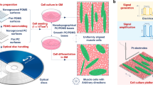 This work was primarily supported by CRISP (NSF MRSEC DMR 1119826). Funds from National Institutes of Health Grant (GM-072194) supported animal studies. Funding for Dr. A. Sawyer was provided by NIH Vascular Research Training Grant (5T32HL007950-12, A.S.). Yale Center for research on interface structures and phenomena (CRISP) and Yale Institute for Nanoscience and Quantum Engineering (YINQE) provided the facilities used for this research. We would also like to thank Dr. A. Bennet for providing C2C12 Myoblasts and Dr. L.B Moore, Sam Caldwell, and Zheng Chen for technical assistance.