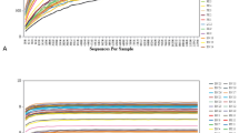 Sequenced amplicons were analyzed following the UPARSE pipeline53. Quality control: PGM adaptor sequences were automatically removed on the ION server (version 3.6.2). Primer sequences and low-quality reads were discarded from the raw output by use of the QIIME toolkit54 (split_libraries.py script: average quality cut-off value: 20; sliding window size: 50 bp; maximum length of homopolymer: 8; minimum sequence length: 200 bp; maximum sequence length: 260 bp). Denoising, chimera removal and OTU-picking: Cleaned reads were denoised and clustered into OTUs with a sequence similarity cut-off of 97%. Chimeric and singleton OTUs (sizes less than 2) were removed. After evaluation of the quality of the sequencing and application of a chimeric reads filter, a total of 2,135,253 clean sequences with an average length of 212 ± 13 bp were obtained (Supplementary Tables S1). Taxonomic assignment and cleaning: Taxonomy was assigned to representative sequences using the RDP classifier55 against the Greengenes database (bacterial OTUs)56. A small number of unexpected archaeal and chloroplast sequences were removed (QIIME filter_taxa_from_otu_table.py script: -p k__Bacteria -n c__Chloroplast). Alpha diversity: Alpha rarefaction was performed using the Shannon, Phylogenetic Diversity (PD), Chao1 and observed species metrics (Supplementary Table S1). Beta diversity and clustering: All samples were rarefied at an equal sequencing depth (8,030 reads/sample) to reduce biases resulting from differences in sequencing depth. Principal coordinate analysis (PCoA) was performed to cluster the microbial communities based on the unweighted UniFrac distance.
