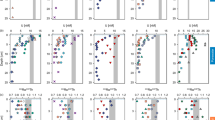 The REE content of size fractioned sediments (<20 μm, 20–50 μm, 50–330 μm, and >330 μm) near station E1 is shown in the Fig. 4D. The <20 μm, 20–50 μm, and >330 μm fractions had, on average, the highest amounts of REEs, whereas the 50–330 μm fraction contained the lowest amount of REEs. The fraction of REEs in the >330 μm size fraction ranged from 25 to 31% of the total REE content in the sediments. Researchers have reported that the size distribution of sinking particles can range from 1 μm to hundreds of μm and sinking particles in the <330 μm size fraction (<20 μm + 20–50 μm + 50–330 μm) are still abundant22. Because particles in this size fraction are likely to make up the bulk of the resuspended bottom sediments over any appreciable depths in the water column, we used a similar approach to the two-end member POC model described above where the concentration of REEs in the <330 μm size fraction was employed to calculate the R/T ratio for sinking particles. The R/T ratios based on individual REEs (Pr, Nd, Sm, Eu, Gd, Tb, Dy, Ho, Er, Tm, Yb, and Lu) ranged from 0.66 to 0.88 at E5, from 0.37 to 0.67 at station E14, and from 0.14 to 0.58 at station E34, respectively (Table 4). The average resuspension ratios at E5, E14, and E34 based on all REEs are 79 ± 9%, 54 ± 10%, and 30 ± 15%, respectively. The resuspension ratios based on REEs are lower than those obtained using the POC method (i.e., 2% at E5, 56% at E14, and 86% at E34, respectively). Consequently, the average POC fluxes, corrected using the REEs resuspension ratios, at E5, E14, and E34 are 998 ± 319, 120 ± 27, and 250 ± 52 mg C m−2 d−1, respectively (Table 4).