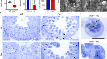 Tissues were fixed in 4% paraformaldehyde (PFA) overnight at 4 °C, embedded in paraffin, serially sectioned (7 μm), and stained with H&E according to standard methods. For immunohistochemistry, de-paraffined and hydrated sections were subjected to antigen retrieval by boiling in 10 mM sodium citrate for 20 min. Sections were then incubated with diluted antibodies (1:50–1:400) at 4 °C overnight. Signals were detected by VECTASTAIN Elite ABC kit and developed using DAB substrate from Vector laboratory (Burlingame, CA). Antibodies used were PLZF, Kit (Santa Cruz Biotechnology, CA), Vimentin, PCNA, cleaved PARP and PTEN (Cell Signaling Technology, MA). Images were captured on a Leica DM2500 stereomicroscope. All images are representative of at least 3 samples.